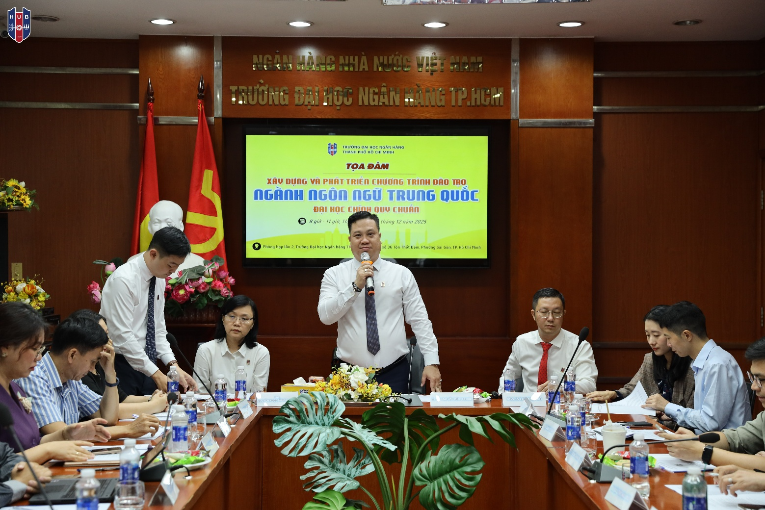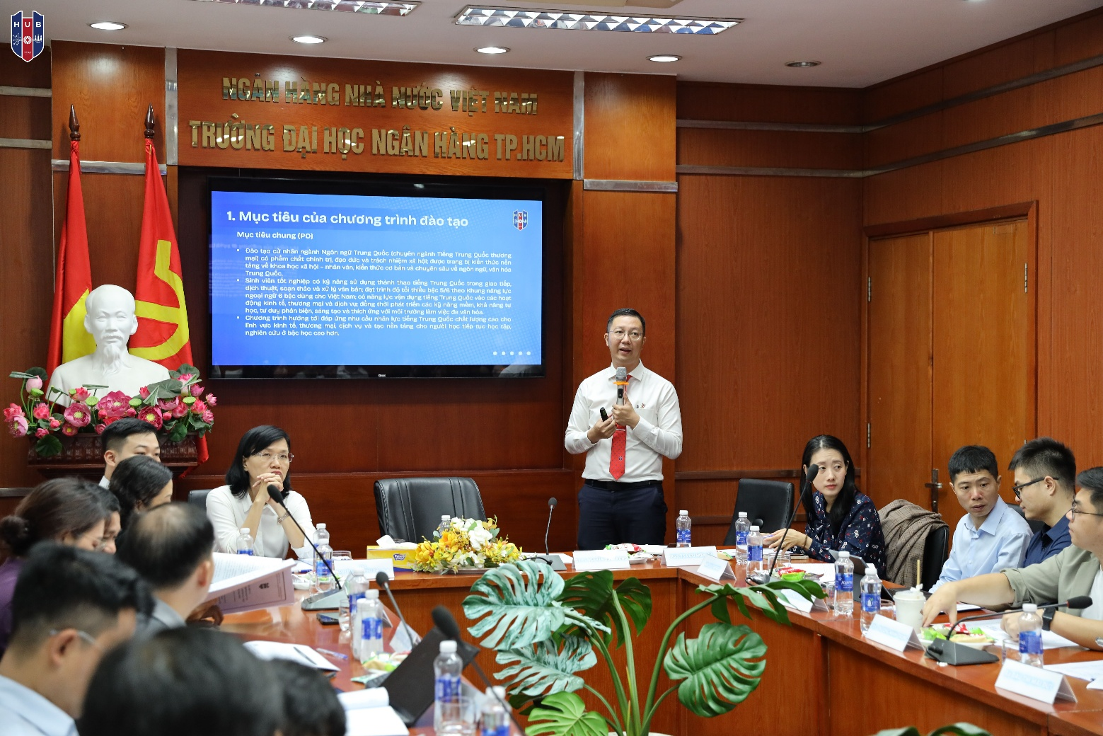 On the early morning of December 3rd, 2025, in the meeting room on the 2nd floor of the 36 Ton That Dam campus, Ho Chi Minh University of Banking (HUB) held the seminar entitled “Building and Developing the Curriculum for Chinese Language Education–Full-Time Undergraduate Program” to gather essential data and collect valuable feedback from internal and external experts, businesses, and employers, recruiters and others to finalize the new major curriculum scheduled to be launched in 2026.